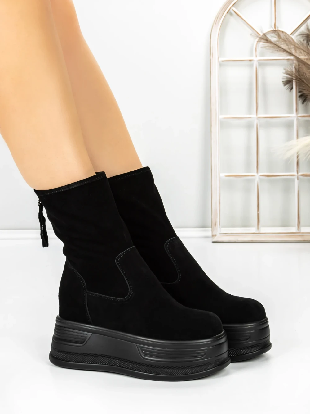 Ghete Dama cu Platforma piele intoarsa5W62 Negru | Pantoful