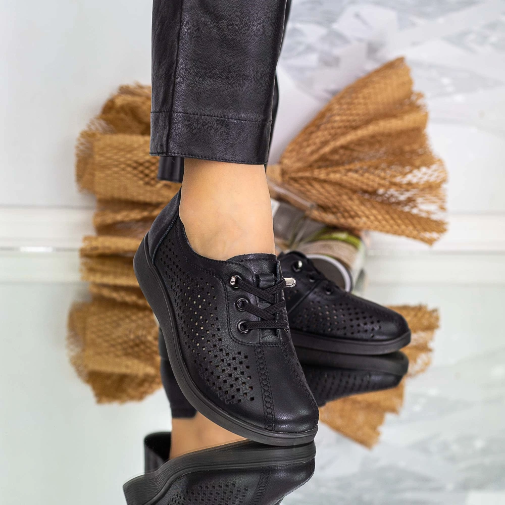 Pantofi Casual Dama din piele naturala 90-55 Negru | Advancer
