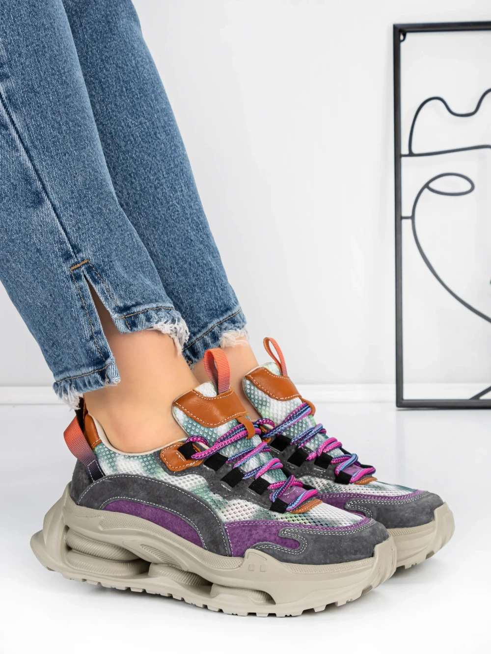 Pantofi Sport Dama din piele naturala HY2986 Crem-Mov | Franco Gerardo