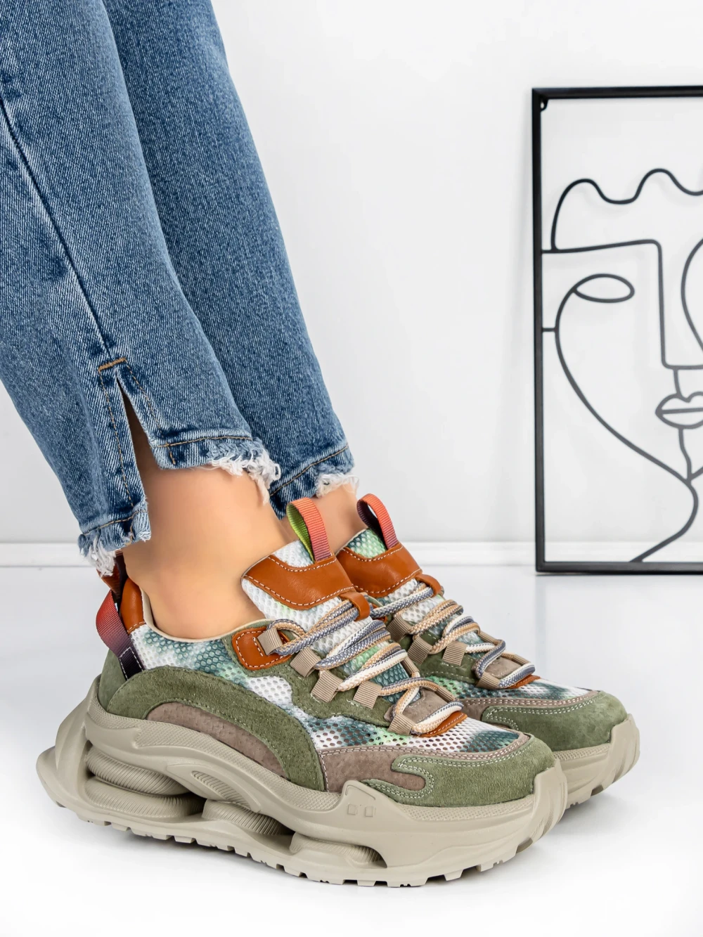 Pantofi Sport Dama din piele naturala 1566825 Maro-Verde | Advancer